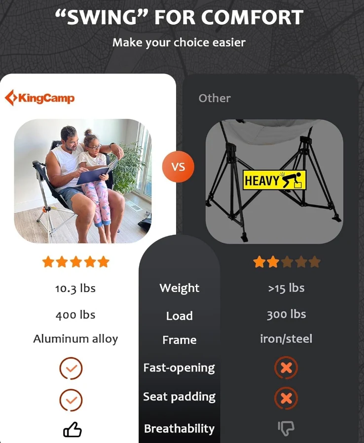 ಹೊರಾಂಗಣ ಕ್ಯಾಂಪಿಂಗ್ ಕುರ್ಚಿ 37.8 "x27.1" x49.2 ", ಅನಿಯಂತ್ರಿತವಲ್ಲದ ಸುತ್ತಲೂ ತಿರುಗಲು ನೀವು ಕೋಣೆಯ ಆಸನ ಪ್ರದೇಶವನ್ನು ಹೊಂದಿದ್ದೀರಿ, ಮತ್ತು ಹೆಚ್ಚಿನ ಬ್ಯಾಕ್ರೆಸ್ಟ್ ನಿಮ್ಮ ಬೆನ್ನನ್ನು ಸಂಪೂರ್ಣವಾಗಿ ಬೆಂಬಲಿಸುತ್ತದೆ. 22.8" ನೆಲದಿಂದ, ರಾಕಿಂಗ್ ಕ್ಯಾಂಪ್ ಕುರ್ಚಿ ವಯಸ್ಕರಿಗೆ ಹಿಗ್ಗಿಸಲು ಸೂಕ್ತವಾಗಿದೆ ಕಾಲುಗಳು ಮುಕ್ತವಾಗಿ.