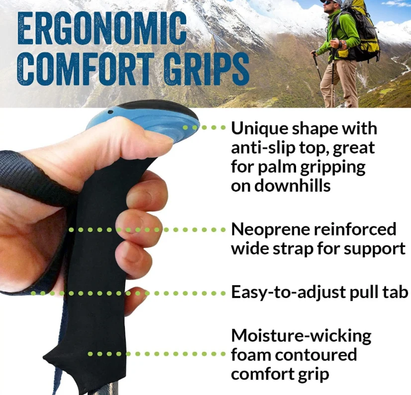 ಡಬಲ್ ಹ್ಯಾಂಡಲ್ ಫೋಲ್ಡಿಂಗ್ ಚಾರಣ ಧ್ರುವ, ಹೊಂದಾಣಿಕೆ ಮಾಡಬಹುದಾದ 2-ತುಂಡು ಮಡಿಸುವ ಪಾದಯಾತ್ರೆ / ವಾಕಿಂಗ್ / ಚಾರಣ ಧ್ರುವಗಳು ಕೇವಲ 13.5 ಇಂಚುಗಳಷ್ಟು ಕುಸಿಯುತ್ತವೆ ಮತ್ತು ತಲಾ 11 oun ನ್ಸ್ಗಿಂತ ಕಡಿಮೆ ತೂಕವಿರುತ್ತವೆ. ಪ್ರಯಾಣ ಪ್ರೇಮಿಗೆ ಸೂಕ್ತವಾದ ಉಡುಗೊರೆ. ನಿಮ್ಮ ಎತ್ತರಕ್ಕೆ ಸರಿಹೊಂದುವ ಧ್ರುವಗಳನ್ನು ಮತ್ತು ನಿಮ್ಮ ಹಿಡಿತಗಳ ಆಯ್ಕೆಯನ್ನು ಆರಿಸಿ.