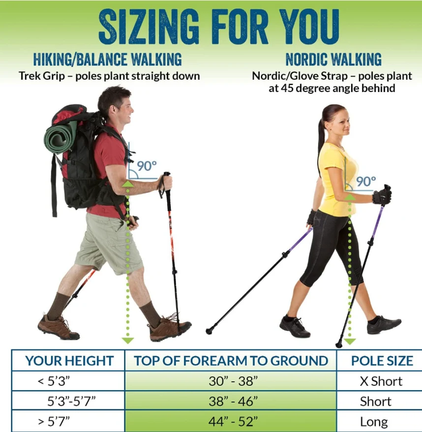 ಉದ್ದದ ಗಾತ್ರ (ಆ 5'7 "6'2 ರವರೆಗೆ") ವಿಸ್ತೃತ ಧ್ರುವಗಳು 115 ಸೆಂ.ಮೀ ನಿಂದ 135 ಸೆಂ.ಮೀ (45.25 "ರಿಂದ 53" ಗೆ) ಹೊಂದಿಕೊಳ್ಳುತ್ತವೆ. ಪ್ರತಿಯೊಂದೂ ಕೇವಲ 11 oun ನ್ಸ್ ತೂಗುತ್ತದೆ. ದೇಹದ ಪ್ರಮಾಣವು ಅನನ್ಯವಾಗಿದೆ, ಆದ್ದರಿಂದ ನೆಲಕ್ಕೆ ಸಮಾನಾಂತರವಾದಾಗ ನೆಲದಿಂದ ನಿಮ್ಮ ಮುಂದೋಳಿನ ಮೇಲ್ಭಾಗಕ್ಕೆ ಅತ್ಯಂತ ನಿಖರವಾದ ಗಾತ್ರದ ಮಾಪನ ಮತ್ತು ಉದ್ದದ ಗಾತ್ರವು 44 'ರಿಂದ 52 ರವರೆಗೆ ಮುಂದಕ್ಕೆ-ನೆಲದ ಅಳತೆಯನ್ನು ಹೊಂದಿರುವವರಿಗೆ ಇರುತ್ತದೆ.