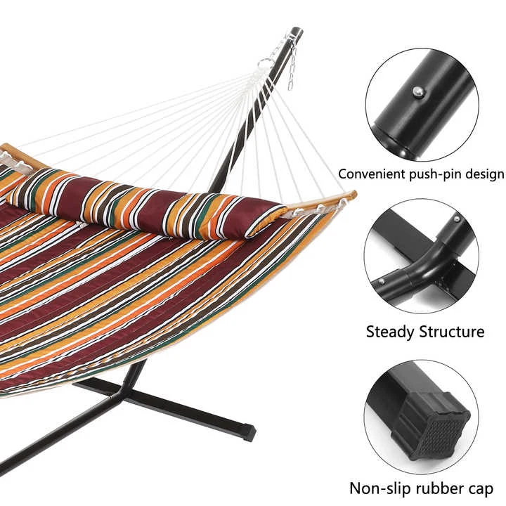 ಪೋರ್ಟಬಲ್ ನೈಲಾನ್ ಕ್ಯಾಂಪಿಂಗ್ ಈ ಆರಾಮ ಆರಾಮ ಜೋಡಣೆ ತುಂಬಾ ಸರಳವಾಗಿದೆ, ಯಾವುದೇ ಸಾಧನಗಳು ಅಗತ್ಯವಿಲ್ಲ. ಬ್ರಾಕೆಟ್ ಅನ್ನು ಜೋಡಿಸಿದ ನಂತರ, ಆರಾಮವನ್ನು ನೇರವಾಗಿ ಬ್ರಾಕೆಟ್ನ ಕೊಕ್ಕೆ ಮೇಲೆ ನೇತುಹಾಕಬಹುದು, ಮತ್ತು ಅದನ್ನು ಸುಲಭವಾಗಿ ಡಿಸ್ಅಸೆಂಬಲ್ ಮಾಡಬಹುದು.