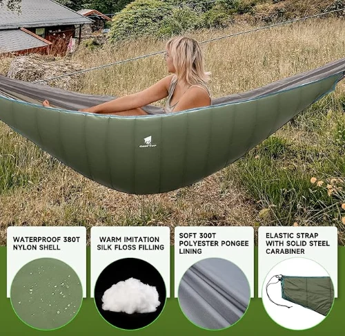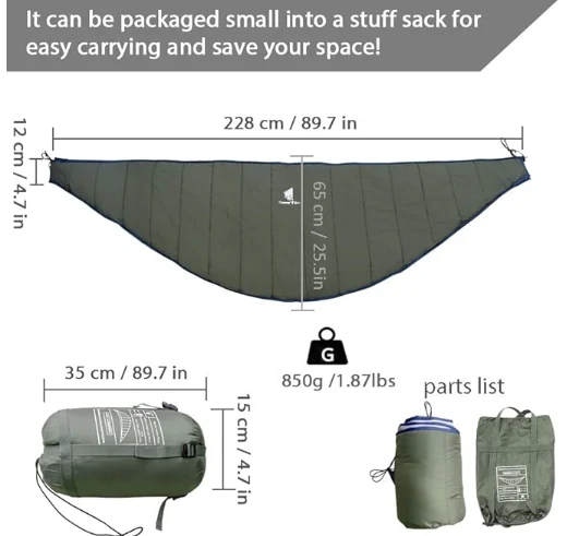 ಟ್ರಾವೆಲ್ ಕ್ಯಾಂಪಿಂಗ್ ಆರಾಮ, ಮಲಗುವ ಚೀಲದ ಸೌಕರ್ಯ ಮತ್ತು ಆರಾಮವನ್ನು ನಿರೋಧಿಸುವುದು, ಯಾವುದೇ ಪ್ರಮಾಣಿತ ಗಾತ್ರದ ಆರಾಮದೊಂದಿಗೆ ಹೊಂದಿಕೊಳ್ಳಲು ಸುಲಭವಾಗಿಸುತ್ತದೆ, ಶೀತ ವಾತಾವರಣದಲ್ಲಿ ನಿಮ್ಮನ್ನು ಬೆಚ್ಚಗಾಗಿಸುತ್ತದೆ .ಜೀಜಿಯಾಂಗ್ ಜಿಯಾವು ಹೊರಾಂಗಣ ಉತ್ಪನ್ನಗಳು ಕಂ, ಲಿಮಿಟೆಡ್. ಸುಲಭ ಸಾಗಿಸುವುದು ಮತ್ತು ಜಾಗವನ್ನು ಉಳಿಸಿ. ಕ್ಯಾಂಪಿಂಗ್, ಬ್ಯಾಕ್ಪ್ಯಾಕಿಂಗ್, ಬೇಟೆ, ಹೊರಾಂಗಣ ಚಟುವಟಿಕೆಗಳು, ಪರ್ವತಾರೋಹಣಕ್ಕೆ ಇದು ಸೂಕ್ತವಾಗಿದೆ